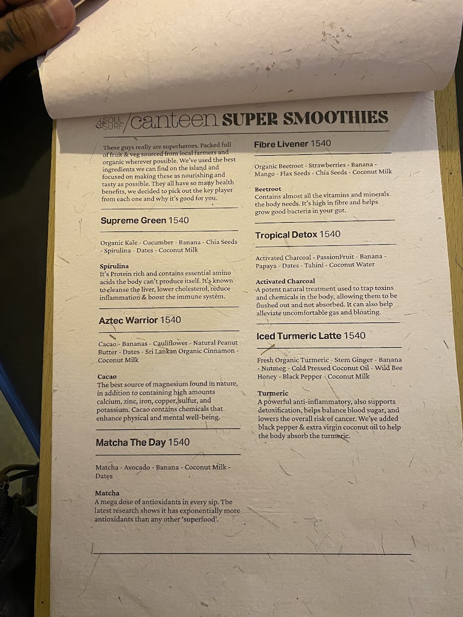 Canteen (by Soul & Surf) Menu